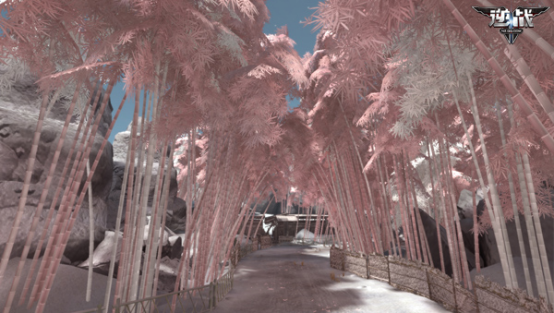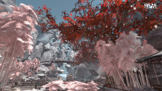 场景来源于猎场地图樱之谷,当你身在这么一片美丽的竹林下是不是会情不自禁的停下脚步静静的欣赏这等奇景呢?白雪搭配上红竹这该有多么浪费啊。
