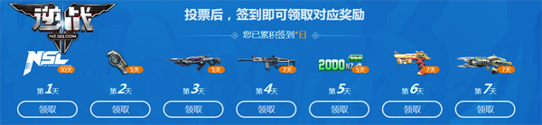 并且在投票之后,玩家还可凭借累积签到天数领取到对应的奖励,包括NZ点购物券、限时武器以及游戏道具等。