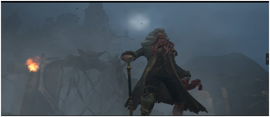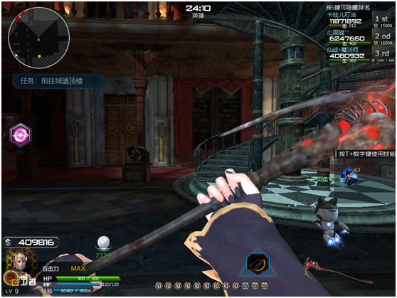 然后D伯爵会瞬移到大门哪里,使用他的武器召唤血气技能,第一次使用时可以躲在伯爵的后方,这样就不会受到血气的攻击,第二次需要在地图的左右两方进行躲避。