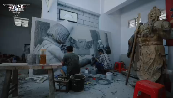 提到江门开平的非遗文化,就不得不提到开平灰雕。在南大区赛举行期间,一幕专门设计搭建的逆战灰雕就出现在场馆附近。