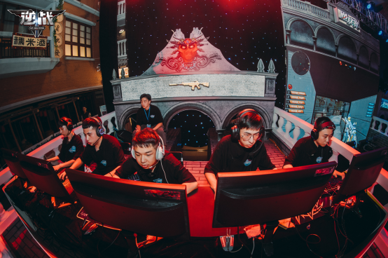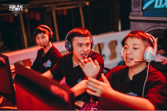 赛场上的战队队员们在大声交流呐喊着。