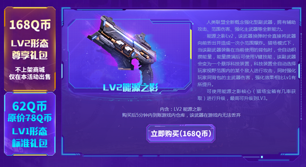 ? ? ? ?能源之影是一把PVE模式和PVP模式通用的副武器,是人类联盟全新的概念化副武器,拥有辅助攻击、范围伤害、强化主武器等诸多能力。手持状态下,能源之影默认手枪形态,威力和手感和黄金之翼接近,虽然没有切枪加成,但是伤害非常可观,PVP模式下爆头的话一枪就能直接带走对手,装备与否均可享100%经验加成。